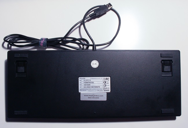 Keyboard has four rubber feets, they must have used some “grand-prix rubber” here because once down, it won’t move, and that’s very nice, you definitely don’t want your keyboard to move around when typing. There are also two additional feet on the back, they allow the keyboard to be lifted a bit and they’re also generously rubberized with the same material.